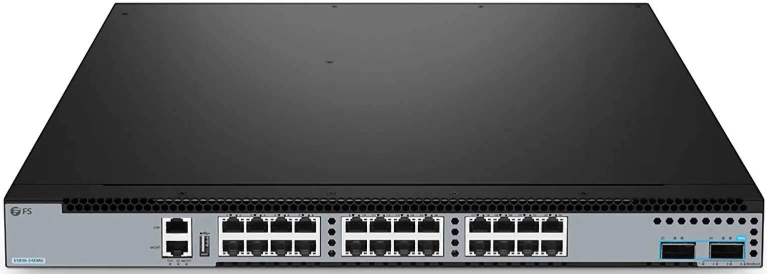 The S5850-24XMG is a high-performance Layer 3 Ethernet switch designed for enterprise core and aggregation networks. It delivers 24 multi-gigabit RJ45 ports supporting 10/100/1000M, 2.5G, 5G, and 10GBASE-T, plus 2 x 100G QSFP28 ports with breakout support for 10G and 25G. Backward compatibility with existing copper cabling simplifies upgrades while maintaining low latency and high port density. Built for resilient, always-on networks, it supports MLAG for uninterrupted services and advanced protocols including MPLS, VXLAN BGP EVPN, OSPF, VRRP, and DHCP relay. Enterprise security includes SSH, ACL, AAA, 802.1X, RADIUS, and TACACS+. Flexible management is available through CLI, web UI, SNMP, RMON, and Syslog. Ideal for Wi-Fi 6 and 6E aggregation, high-end wiring closets, campus cores, and network edge deployments.