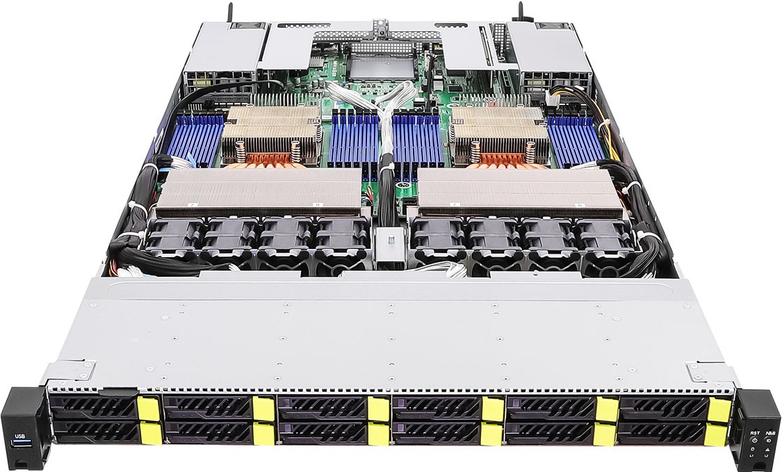 Unlock extreme performance in a compact footprint with this 1U AMD EPYC™ 9005 rackmount server, engineered for high-density compute, virtualisation, and next-gen data workloads. Powered by dual SP5 sockets and up to 24 DDR5 DIMM slots delivering ultra-fast memory bandwidth, this platform is built for demanding enterprise environments. Enjoy exceptional storage throughput with 12 hot-swap PCIe 5.0 NVMe bays, plus flexible expansion via dual FHHL PCIe 5.0 x16 slots, dual M.2, and OCP NIC 3.0 for advanced networking. Redundant 80 PLUS Platinum 2000W power supplies and full IPMI remote management ensure reliability and ease of administration—making this server an ideal choice for high-performance cloud, edge computing, and data-intensive applications.