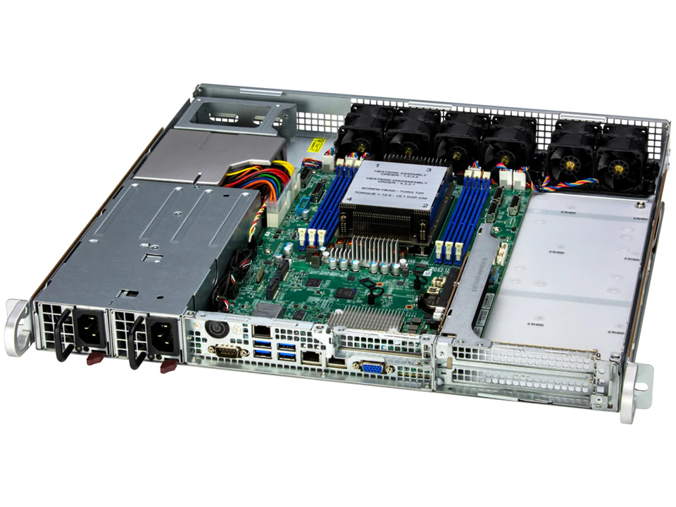 Powered by the efficient AMD EPYC™ 8004 Series processor, this server delivers strong performance for edge, virtualization, and scalable workloads. With 6 DDR5-4800 DIMM slots supporting up to 768GB of high-speed memory, it ensures smooth multitasking and reliable throughput. Connectivity is optimized with dual 10GbE Base-T ports via the Broadcom BCM57416 controller, plus a dedicated IPMI LAN port for streamlined remote management. Redundant 800W Platinum power supplies provide enterprise-grade reliability, making this system a robust, energy-efficient choice for modern data center and edge deployments.