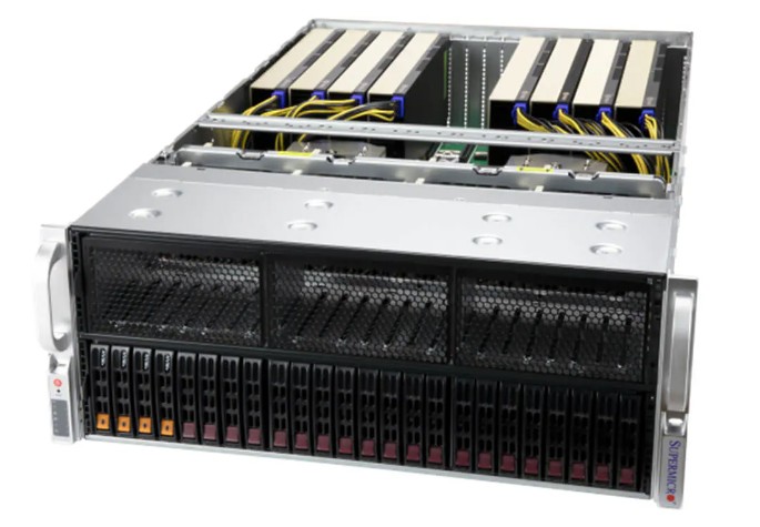 Experience unmatched AI and HPC flexibility with this powerful dual-socket AMD EPYC™ 9004/9005 GPU server, engineered for maximum GPU density and performance. Featuring direct-attached support for up to eight double-width, full-length GPUs—both active and passive—this system is built for intensive AI training, inferencing, and accelerated compute workloads. With 24 DIMM slots supporting up to 6TB of DDR5-6000 memory, it delivers exceptional throughput for memory-heavy applications. Storage options include dual hot-swap SATA and four hot-swap NVMe bays, plus an onboard M.2 slot for fast OS deployment. Eight hot-swap heavy-duty fans ensure reliable cooling under extreme loads, making this an ideal choice for modern AI labs, large-scale model development, and GPU-accelerated cloud environments.